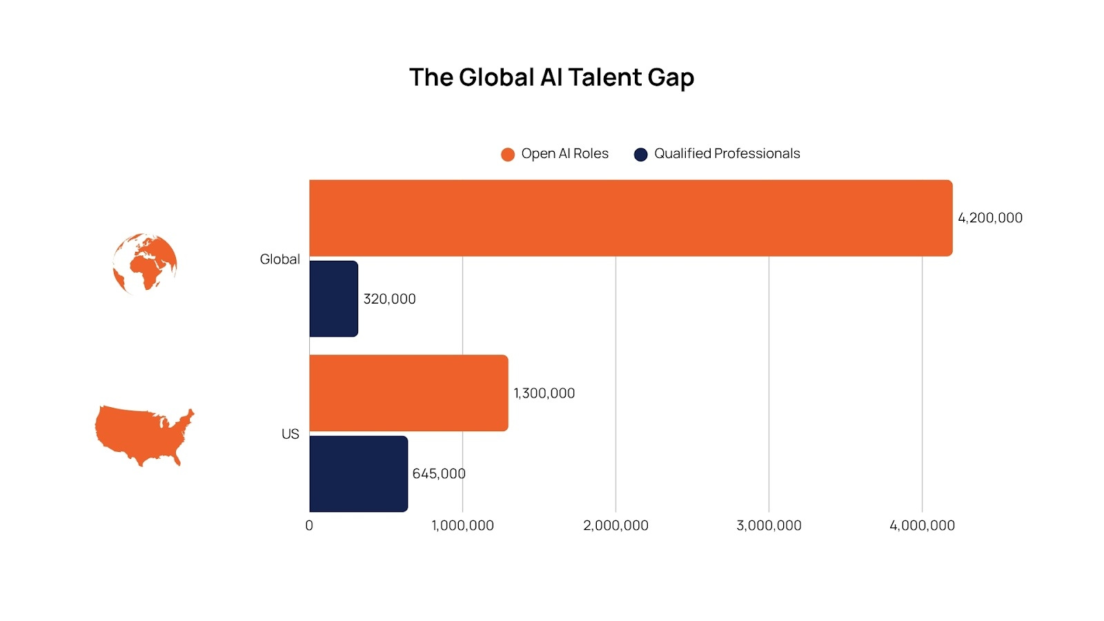 4.2 million artificial intelligence jobs remain unfilled worldwide, yet only 320,000 qualified professionals exist to meet the demand — a fill rate of just 7.6%.