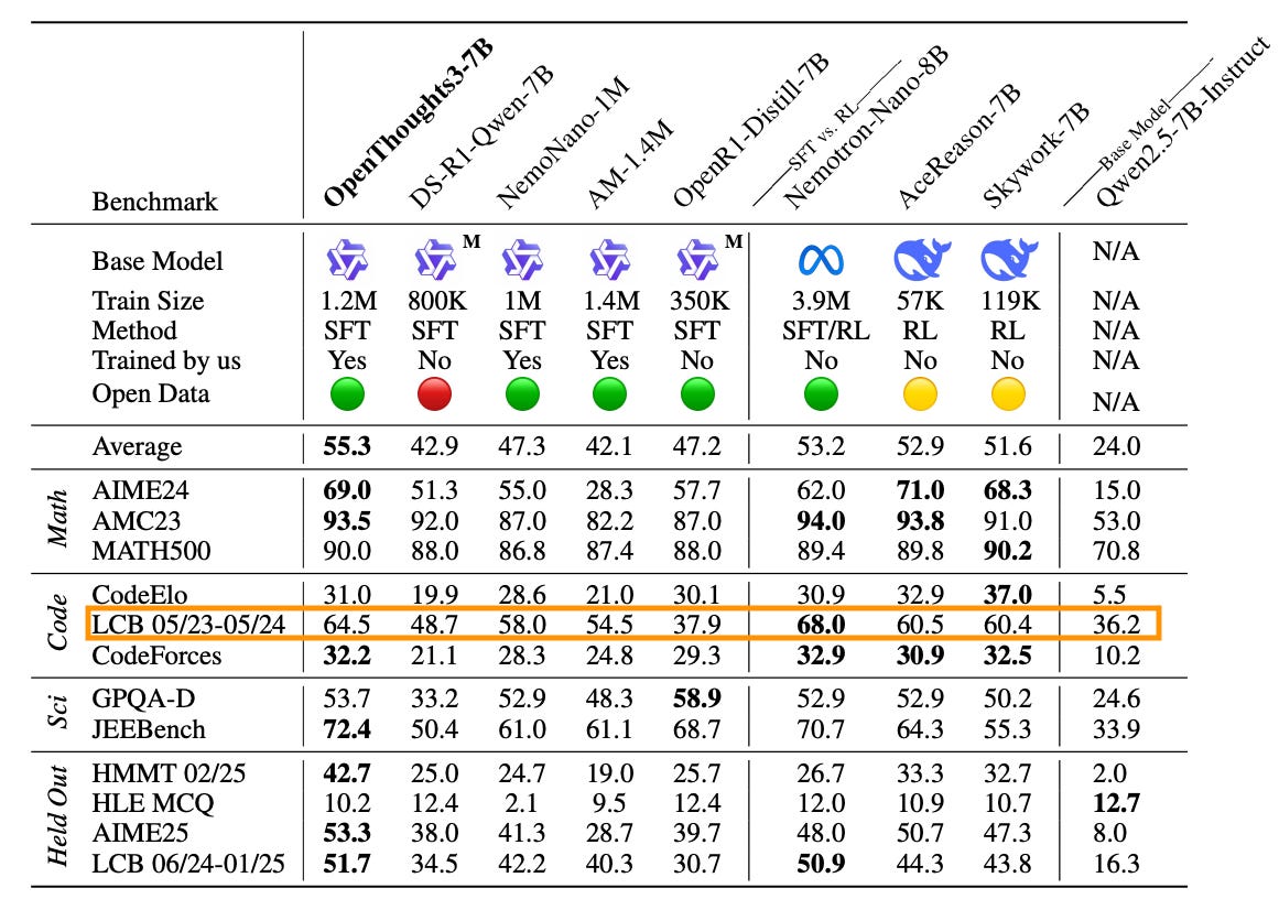 When OpenAI released the gpt-oss last week, the official blog reports the model’s performance on AIME but there is no official report of how good the model is for coding. Out of curiosity, we plugged the model into our post-training workflow and reported a LiveCodeBench score of 0.70 for pass@1 in this blog post.